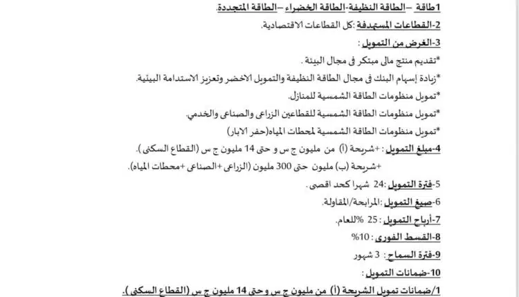 رغم عدم الإفصاح عن كل تفاصيل البرنامج حتى اللحظة، إلا أن مصادر بالبنك أشارت إلى أن التمويل سيكون بشروط ميسّرة، مع فترات سداد مرنة، وقد يشمل: